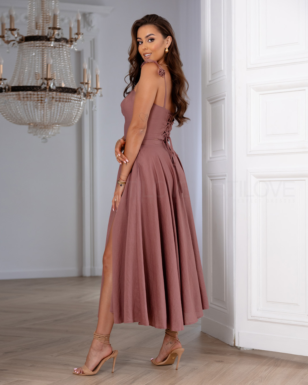 - Top ala gorsetowy z wiązaniem na plecach, dzięki czemu idealnie dopasowuje się do sylwetki
