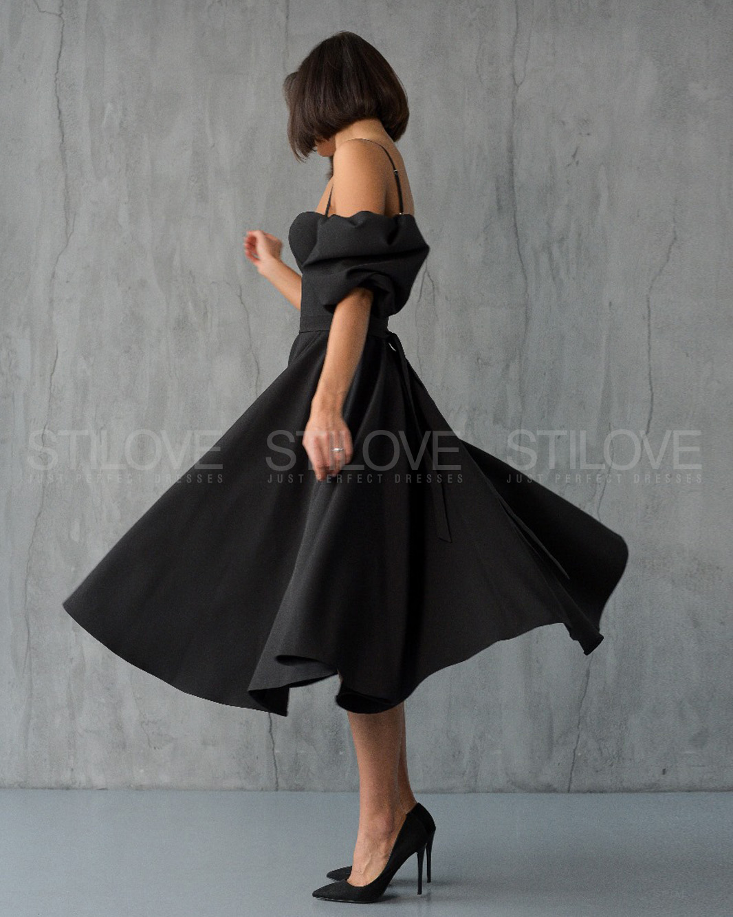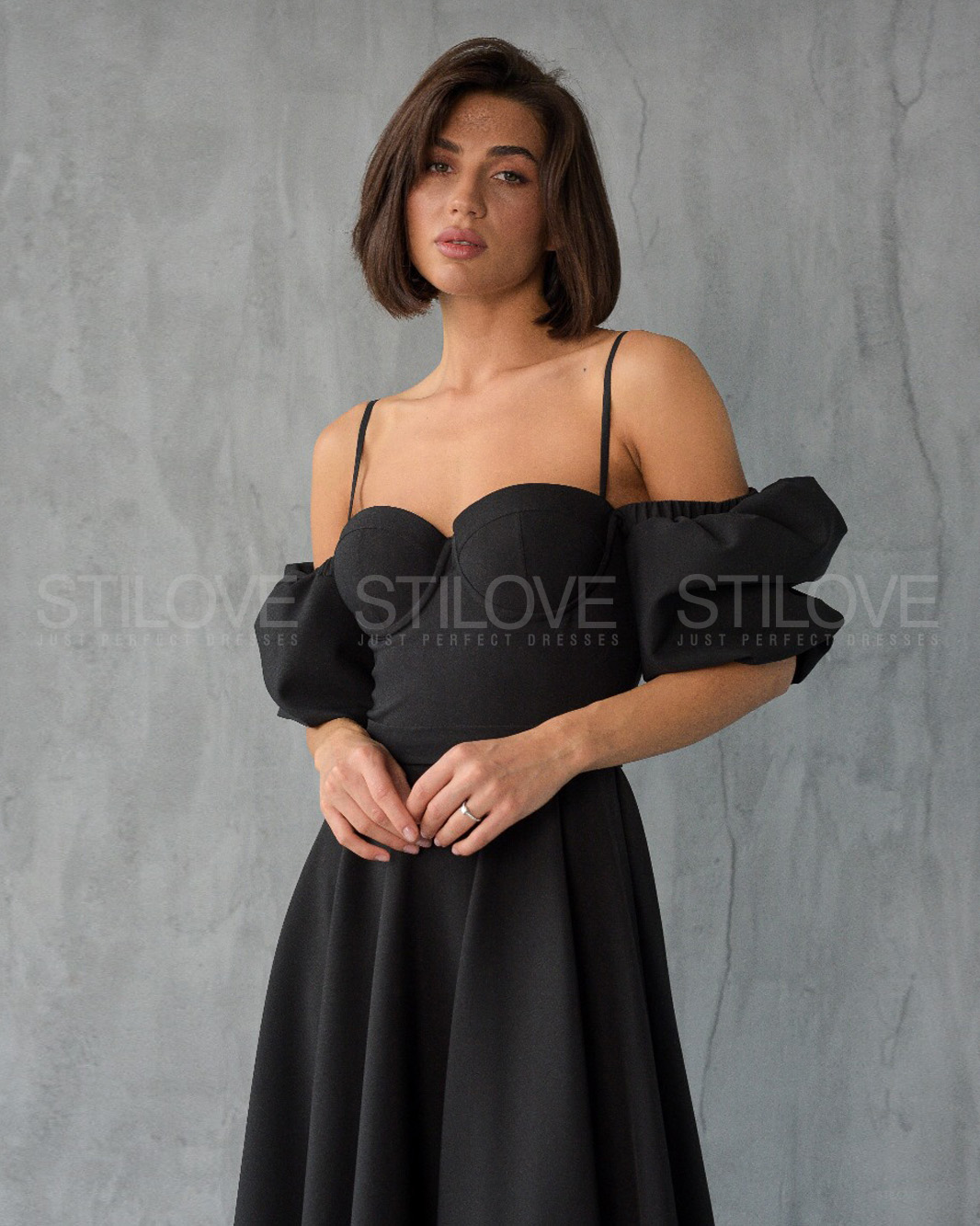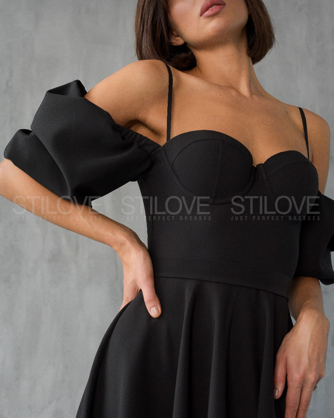 GORSETOWA SUKIENKA MIDI Z OPADAJĄCYMI RĘKAWKAMI
