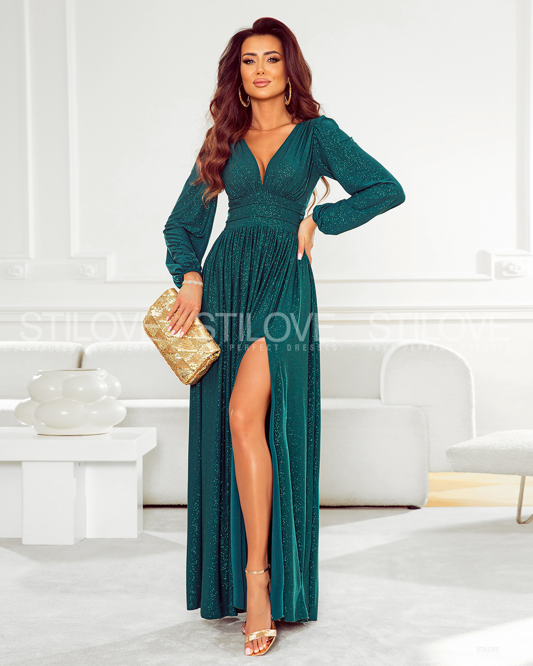 BROKATOWA SUKNIA MAXI Z RĘKAWEM