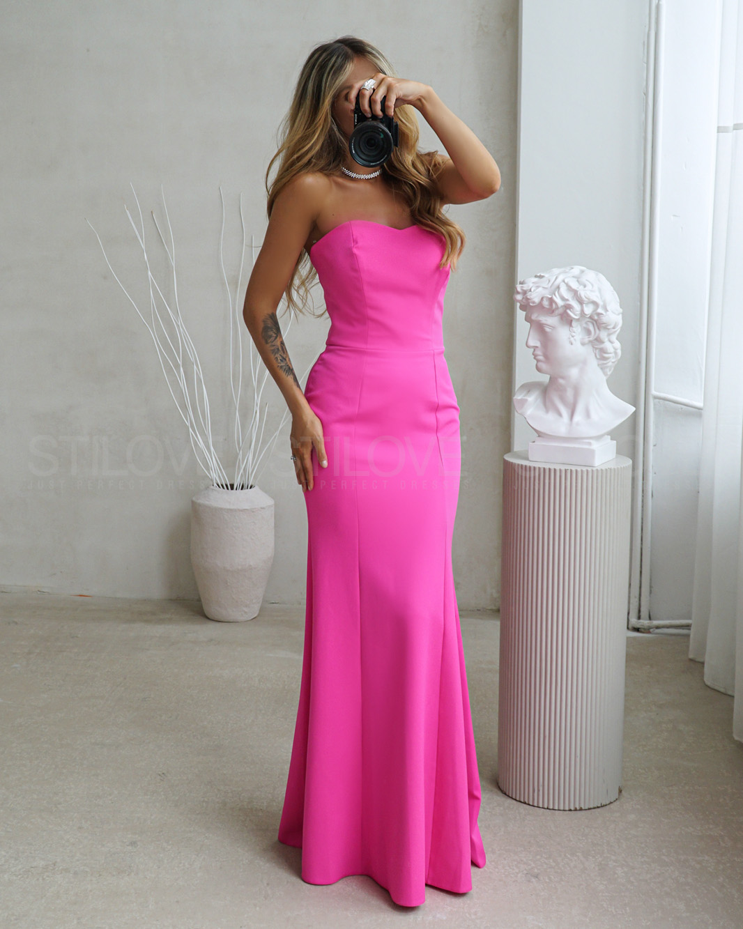 G贸ra z subtelnym dekoltem w kszta艂cie serca pi臋knie eksponuje ramiona i szyj臋, a taliowany fason z delikatnie rozszerzanym do艂em w stylu syreny dodaje ca艂o艣ci szyku i klasy.
