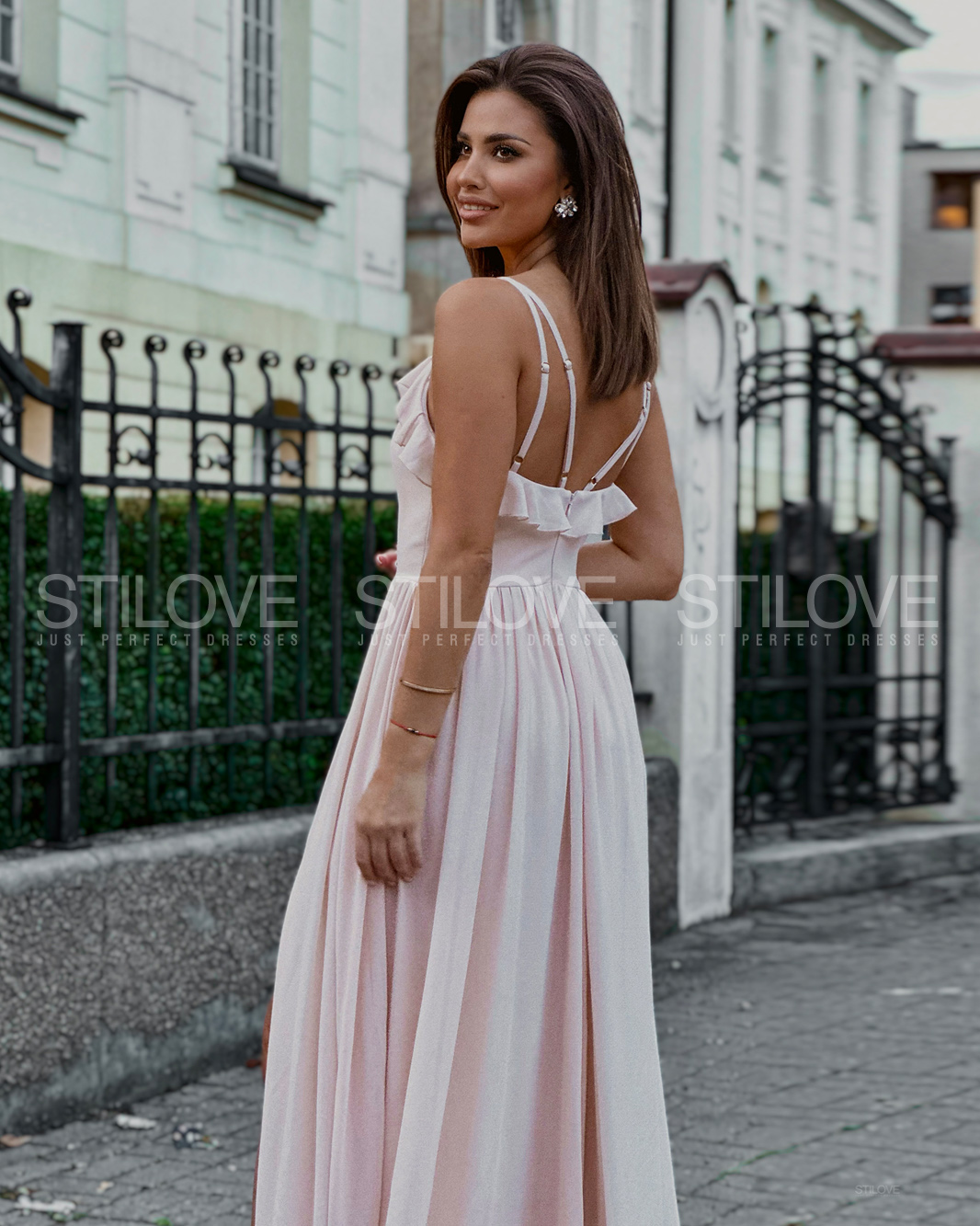 Całości dopełnia rozcięcie na nogę, dzięki któremu możesz swobodnie tańczyć. Rozkloszowany dół składa się z dwóch warstw: podszewki i wysokiej jakości szyfonu (nic nie drapie, nie prześwituje).