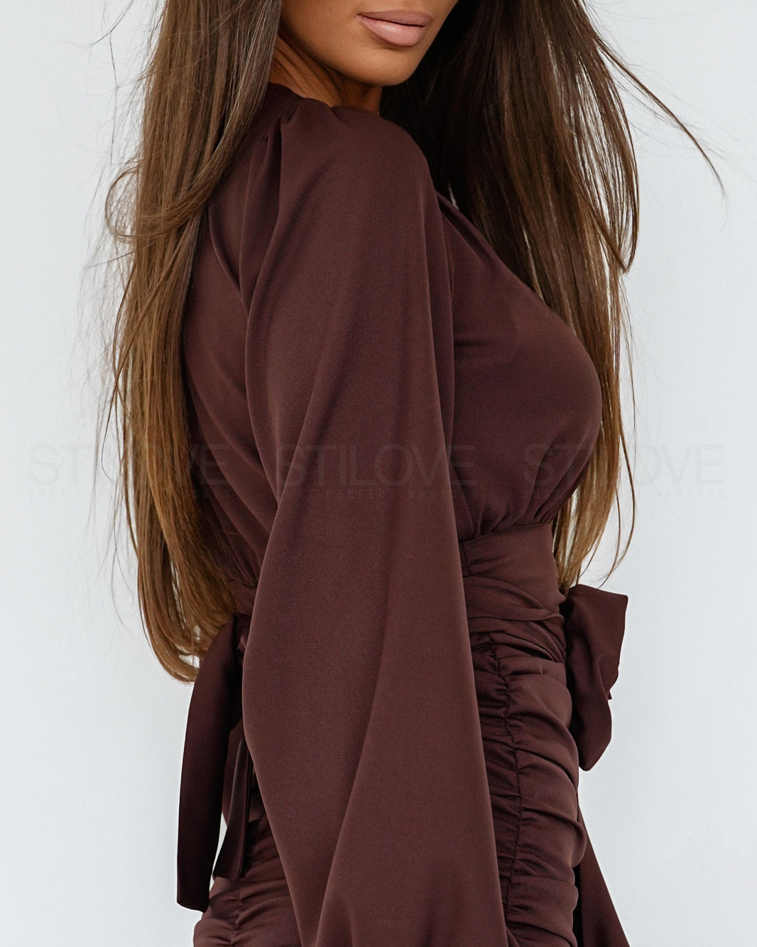 - Asymetryczne drapowanie i zdobienie w talii pięknie podkreśla sylwetkę