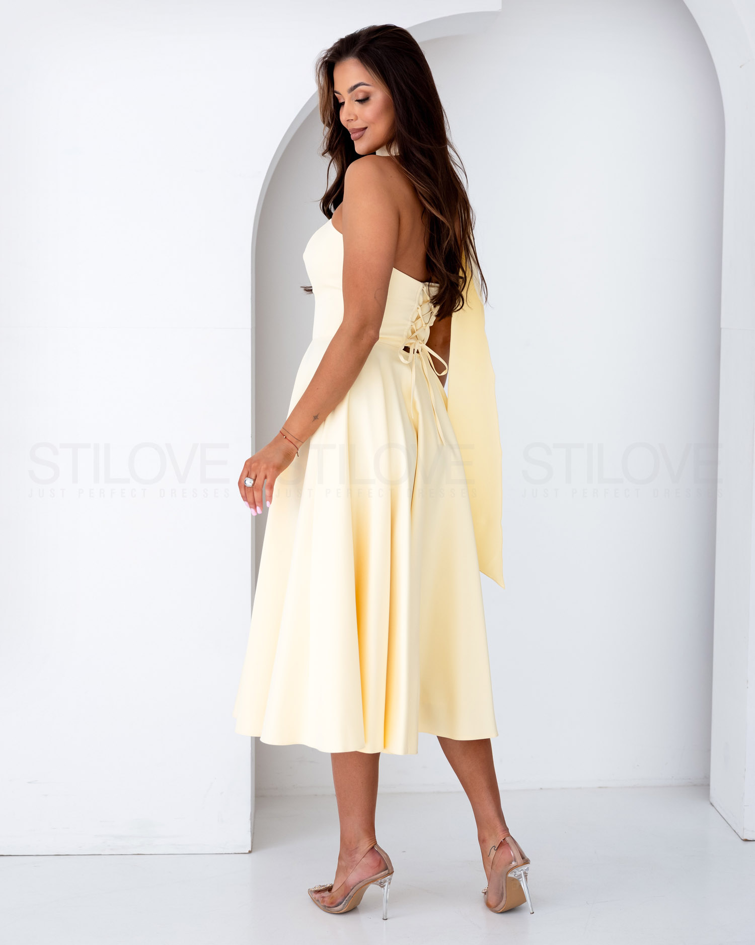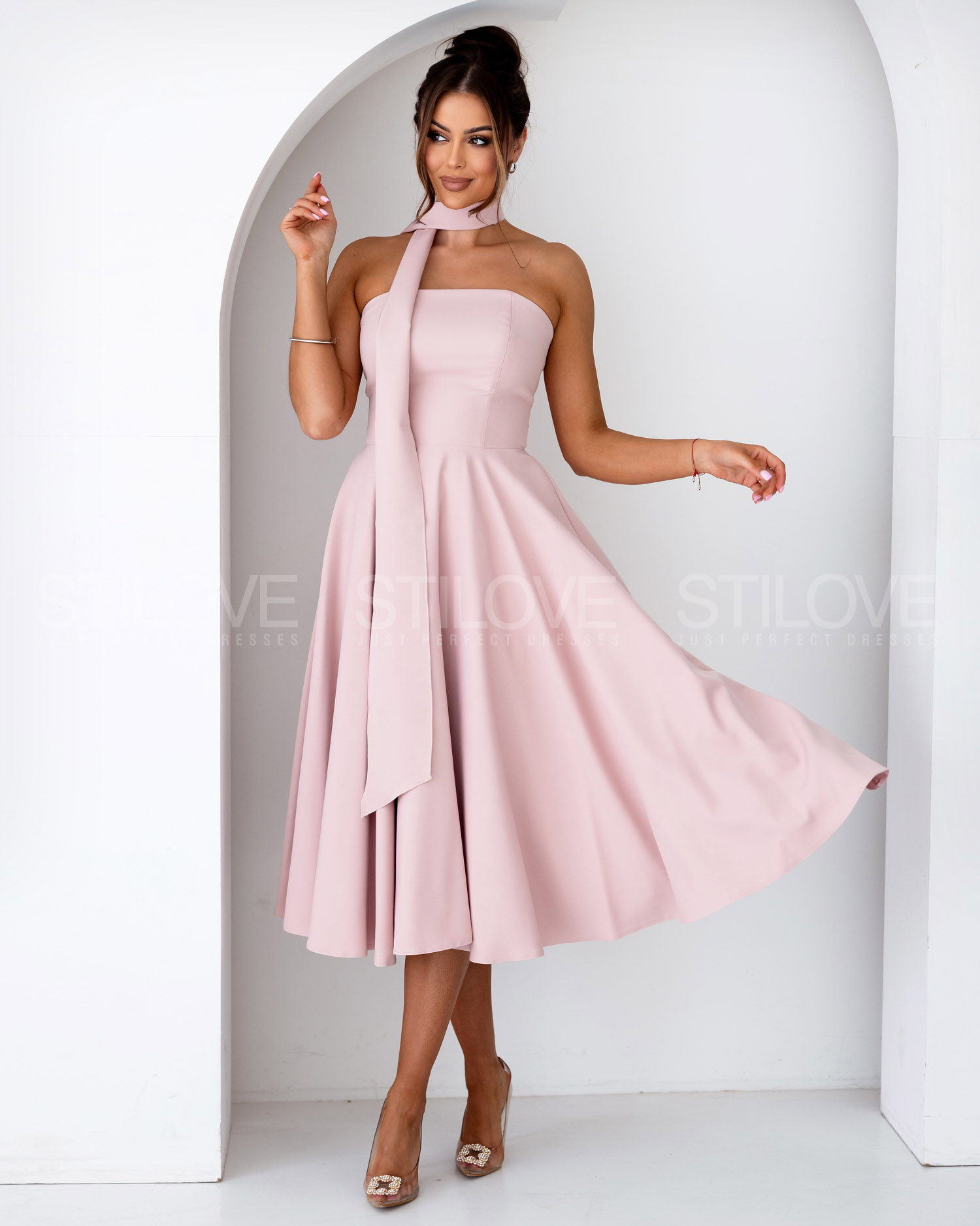 WIĄZANA SUKNIA MIDI Z OZDOBNYM PASKIEM