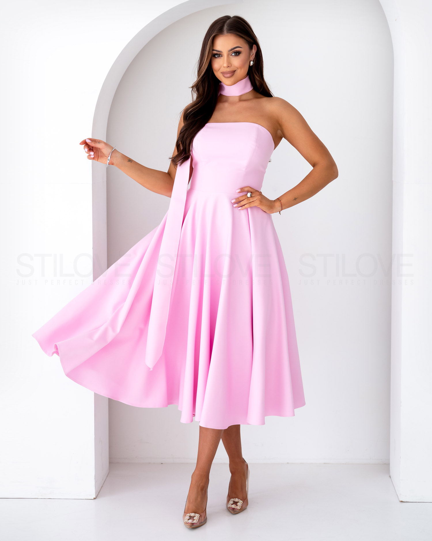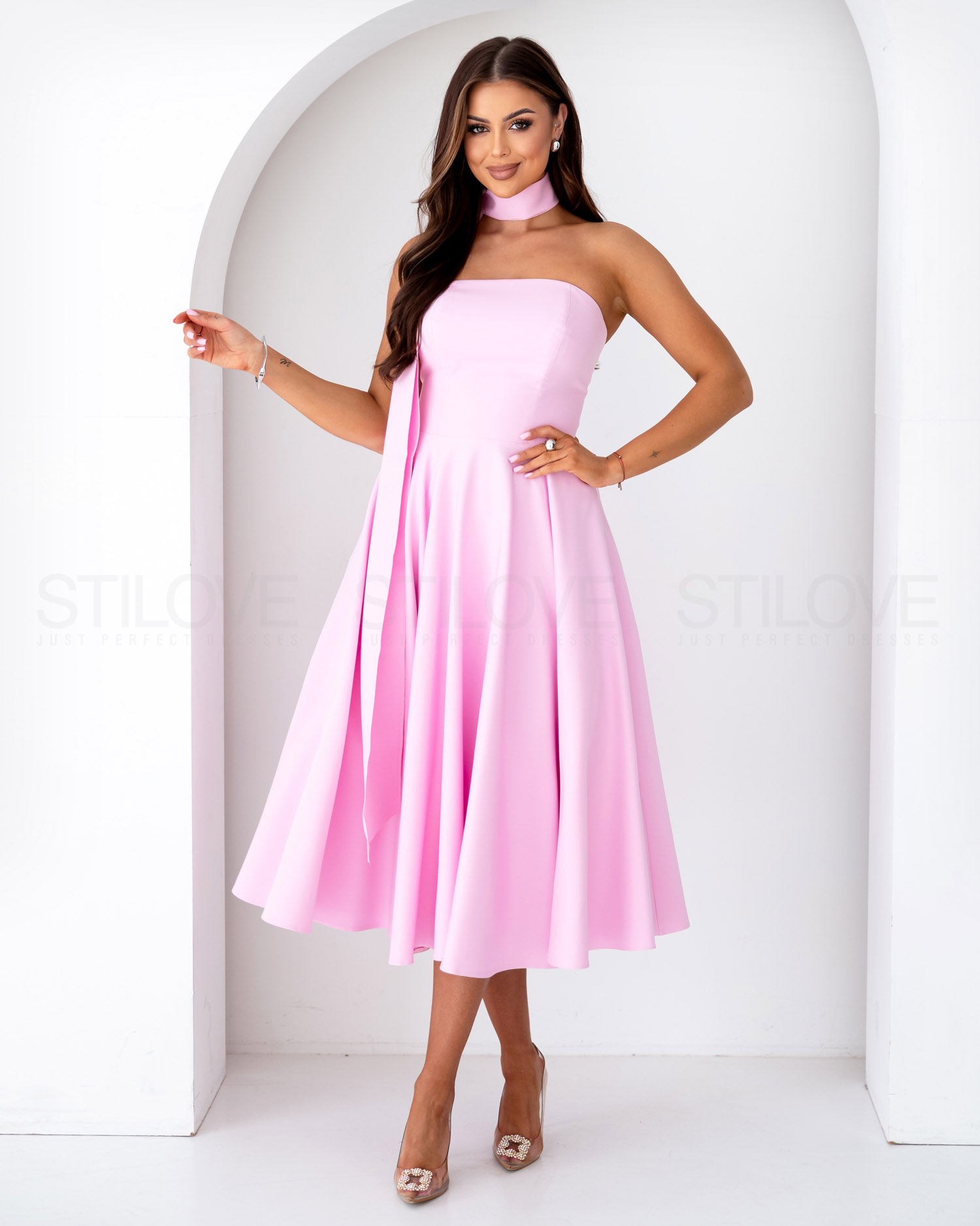 WIĄZANA SUKNIA MIDI Z OZDOBNYM PASKIEM