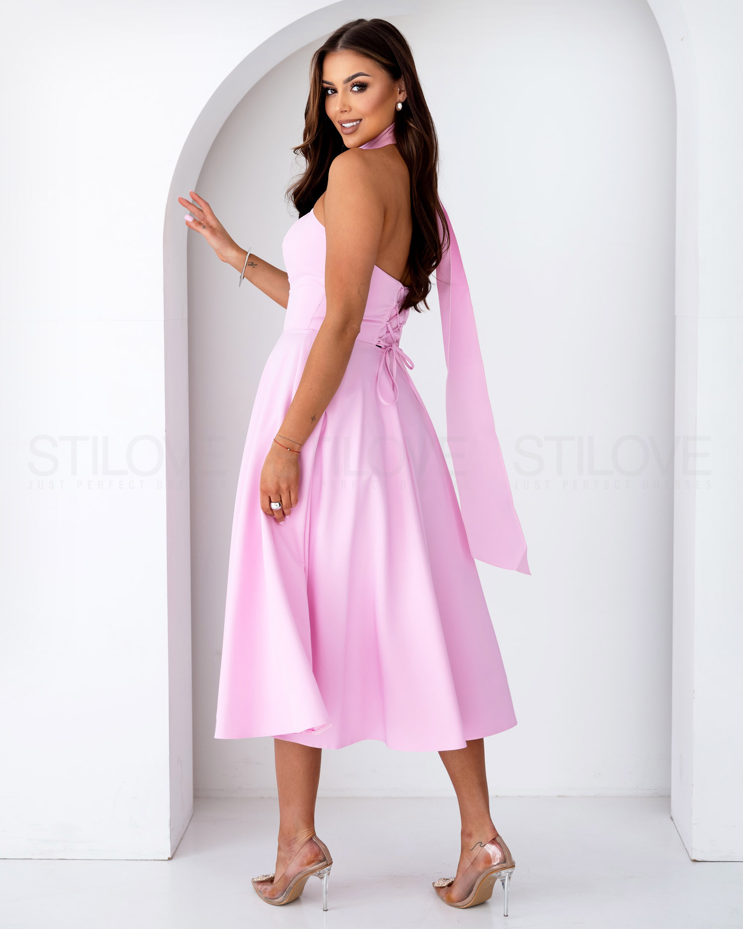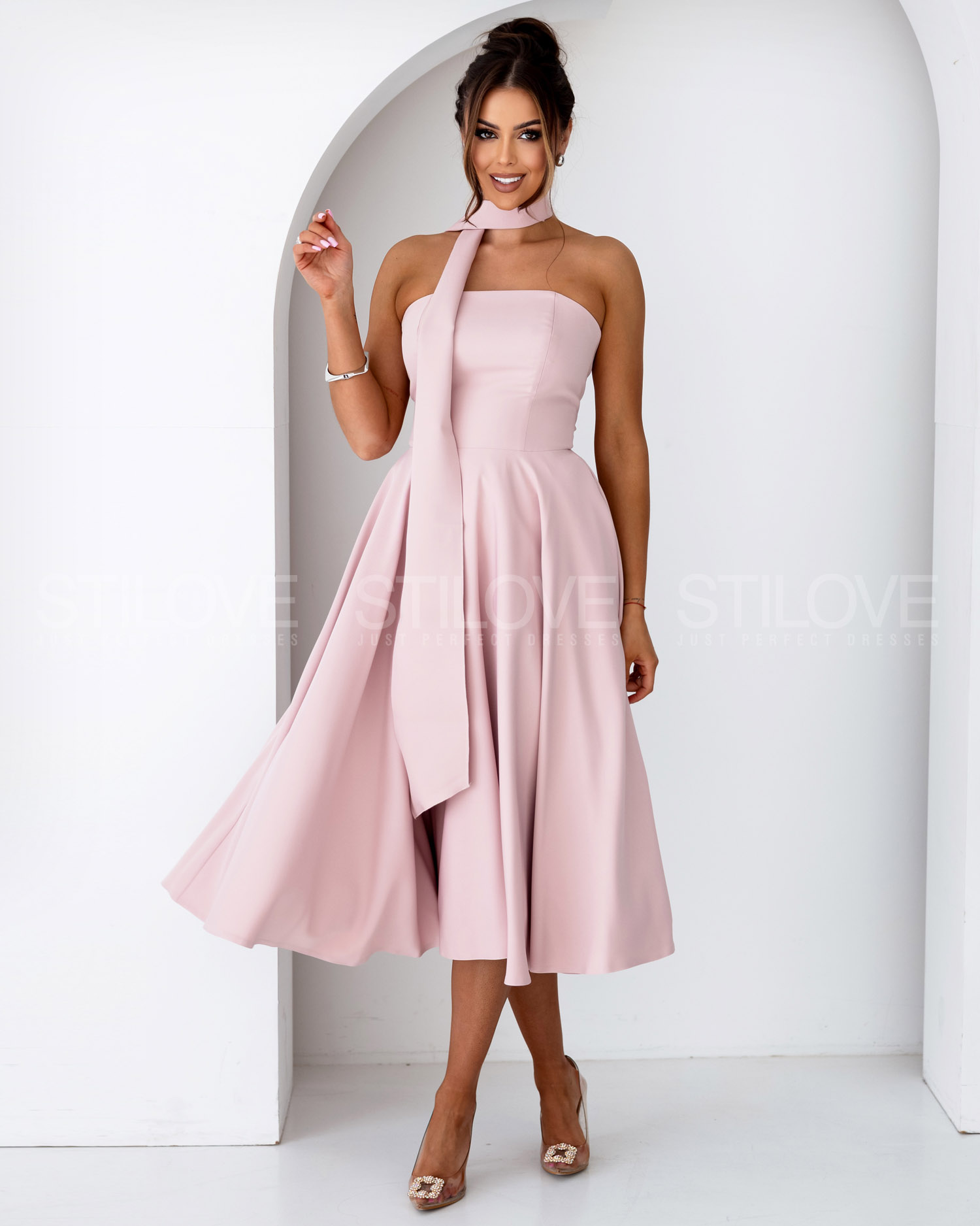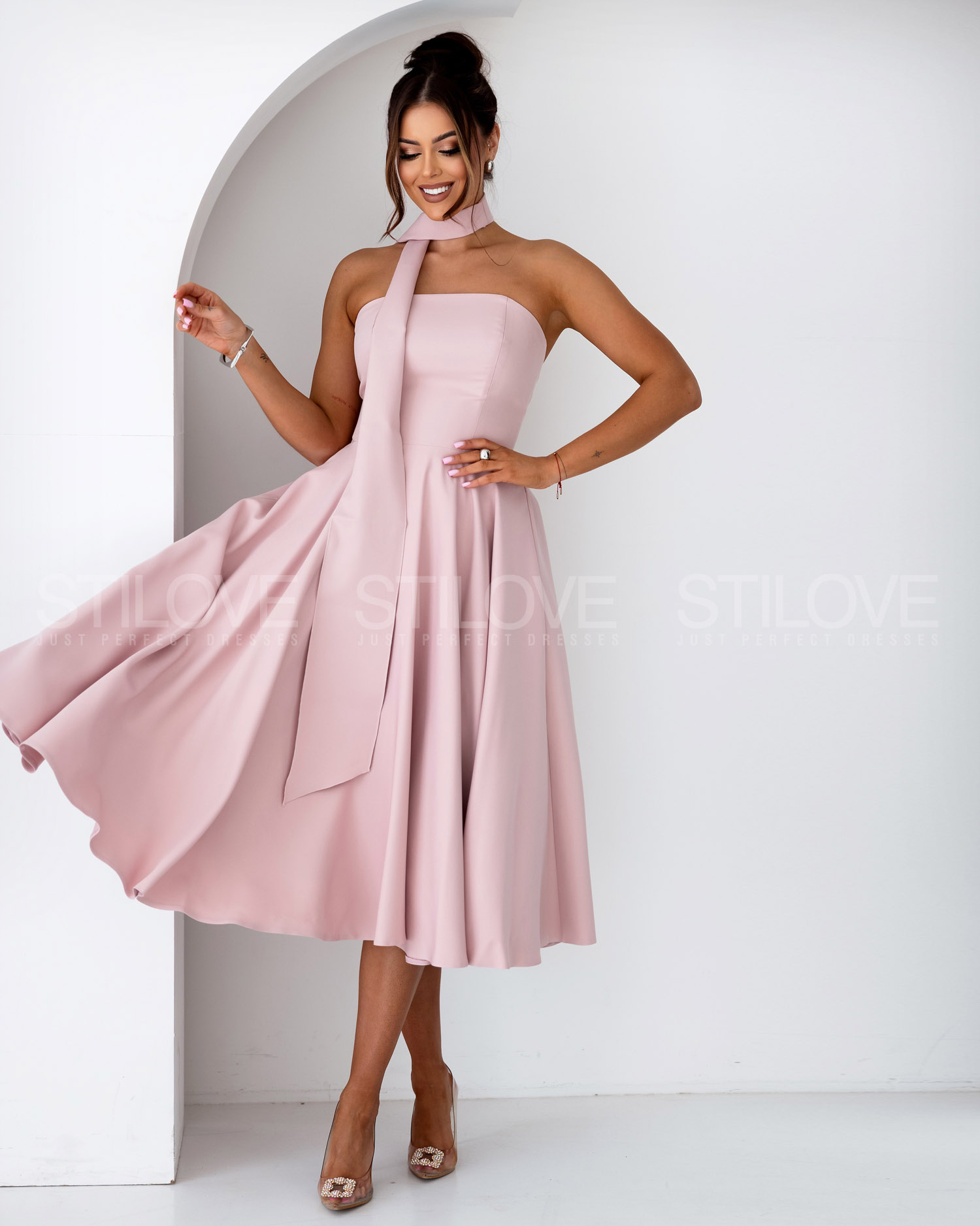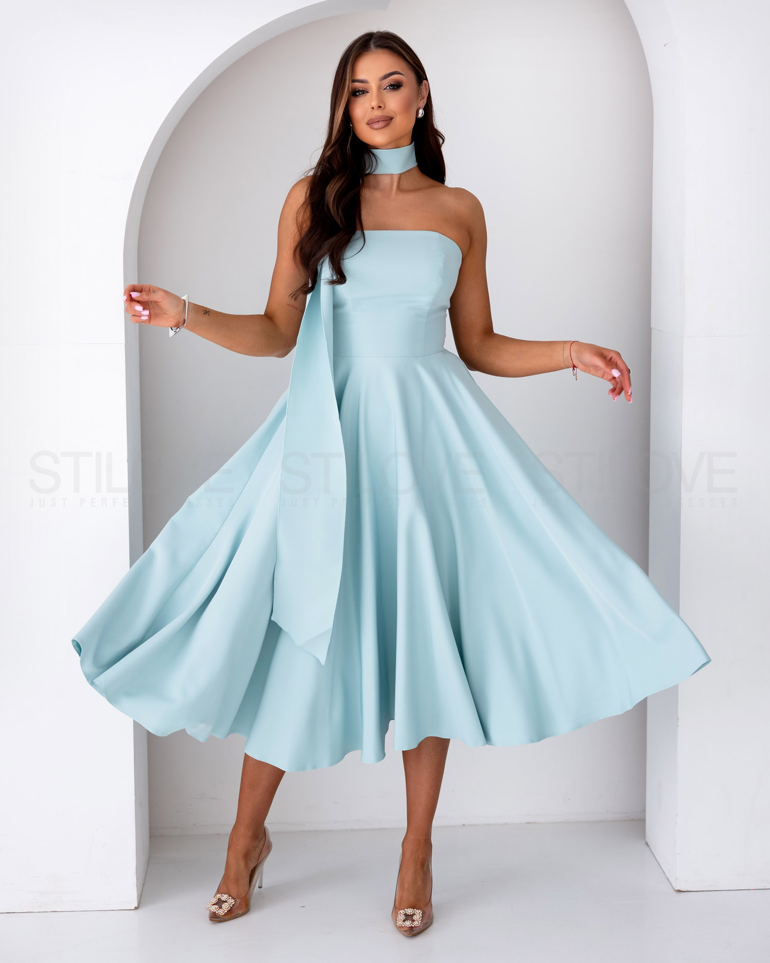 WIĄZANA SUKNIA MIDI Z OZDOBNYM PASKIEM