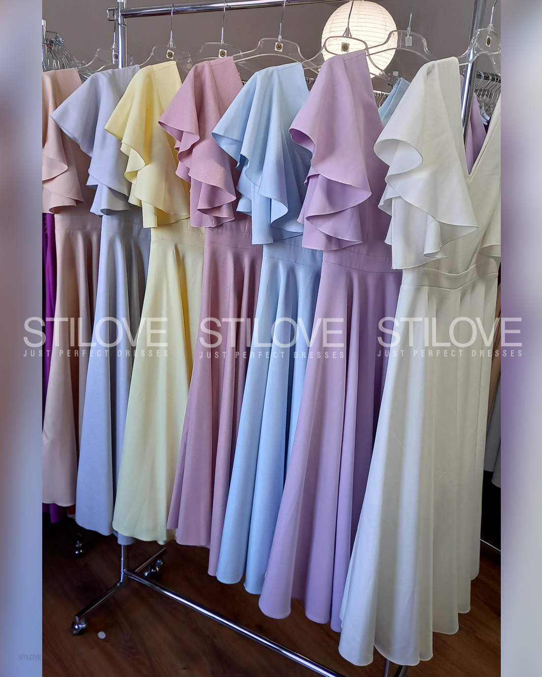 Wyjątkowa sukienka uszyta z pełnego koła, dzięki czemu przepięknie układa się podczas ruchu. Kloszowany dół w modnej długości 7/8 dodaje lekkości i elegancji, a dopasowana góra z efektownymi rękawkami w formie falbanek podkreśla ramiona i nadaje całości romantycznego charakteru.