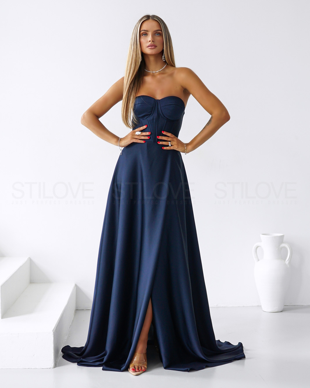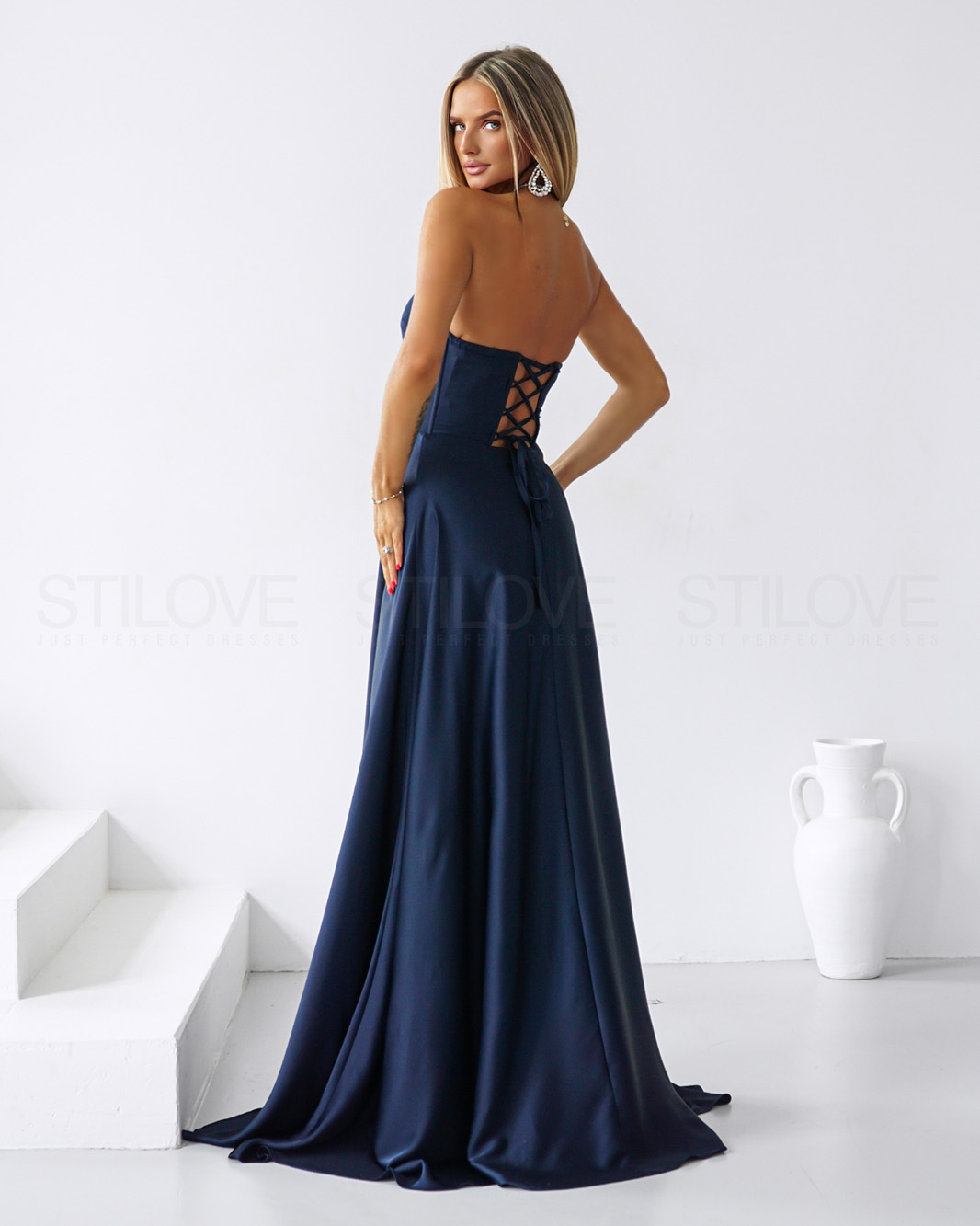 SUKNIA SATYNOWA MAXI Z GORSETEM I ODPINANYMI RAMIĄCZKAMI