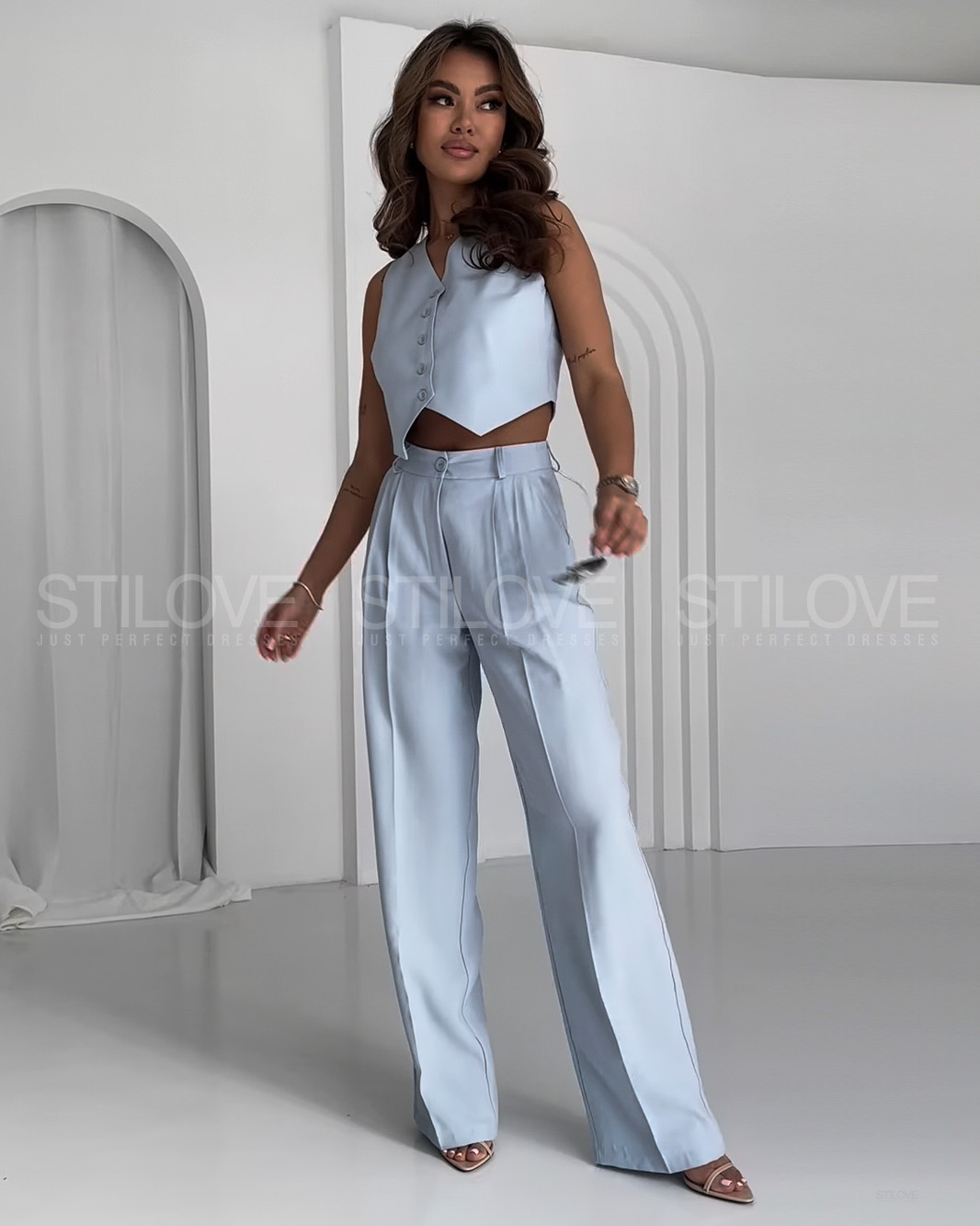 - Idealnie skrojone spodnie w zestawie z kr贸tk膮 kamizelk膮 to must have w ka偶dej szafie